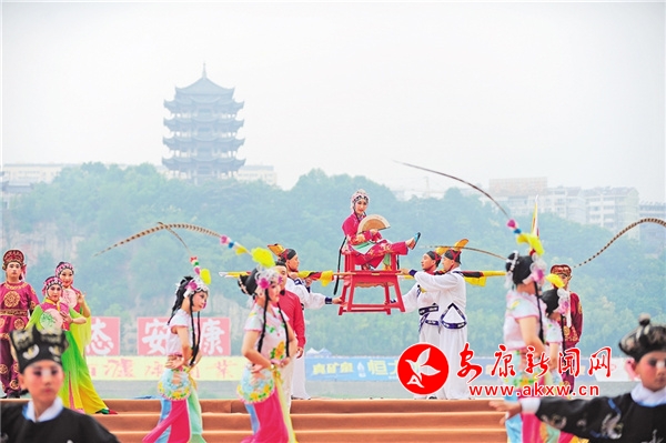 2015年,第十五屆安康龍舟節(jié)開(kāi)幕式上的戲曲表演。 林江 攝