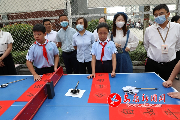 簡短的啟動儀式結束后,市創(chuàng)文辦一行參觀了社區(qū)書吧,并在運動場觀看未成年人展示活動。展示內(nèi)容主要包括現(xiàn)場書寫社會主義核心價值觀、集體花樣跳繩、籃球訓練、獨唱、個人武術和倡議書宣讀,F(xiàn)場,同學們身著整齊的服裝,戴著鮮艷的紅領巾,精神煥發(fā)地來到展示場地。在熱烈歡快的節(jié)奏中,一張張笑臉洋溢著自信和陽光,舉手投足間盡顯安康少年風采。流暢的書法、炫酷的跳繩、優(yōu)美的歌聲、靈動的棍法……孩子們的精彩表演引來一眾居民駐足圍觀,不時傳來熱烈掌聲。BZK安康新聞網(wǎng)