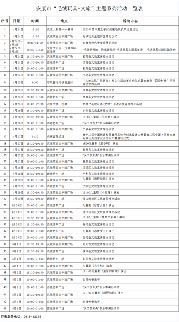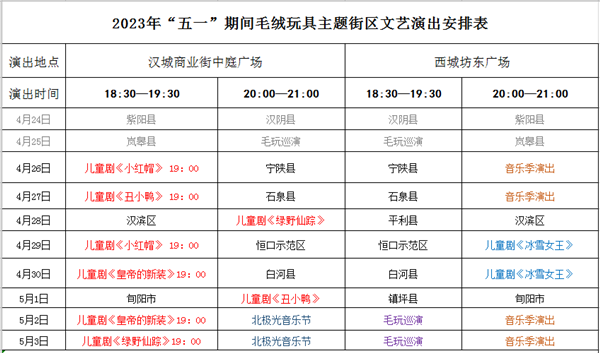 2023年“五一”期間毛絨玩具主題街區(qū)文藝演出時(shí)間安排表公布D2u安康新聞網(wǎng)