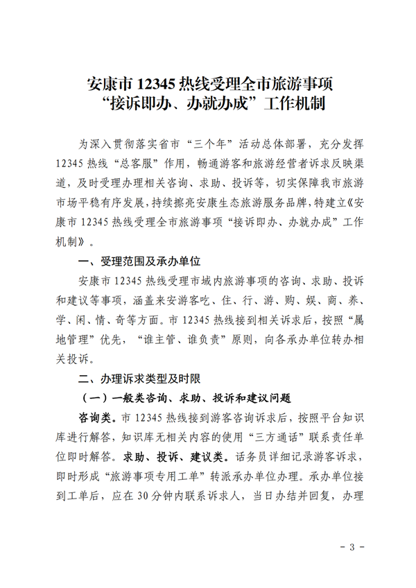 關(guān)于印發(fā)《12345 熱線受理全市旅游事項“接eHU安康新聞網(wǎng)