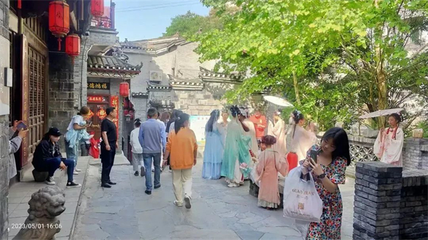 蜀河古鎮(zhèn)景區(qū)迎來客流高峰,僅假期前三天,單日接待游客超六千人。在景區(qū)各集散地,文旅中心為廣大來蜀游客提供志愿講解、旅游咨詢服務;同時,中心開放一樓大廳,為游客提供座椅茶水,避暑休憩及開放廁所服務,全力提升游客游覽體驗,營造舒心旅游環(huán)境。中心協(xié)助蜀河鎮(zhèn)開展的“穿越千年古鎮(zhèn) 暢游詩意蜀河”系列文化活動更是精彩紛呈,樂趣不斷,讓游客體驗千年古鎮(zhèn)的文化魅力。