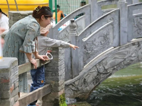 饒峰驛站的親子游樂園傳來孩子們的歡聲笑語,爛漫且文藝的月季花長廊下坐滿了游客,高空漂流的入口排滿了長隊,小朋友在露營燒烤的草坪上快樂奔跑、拍照留影,成為景區(qū)內又一道美麗的風景線。