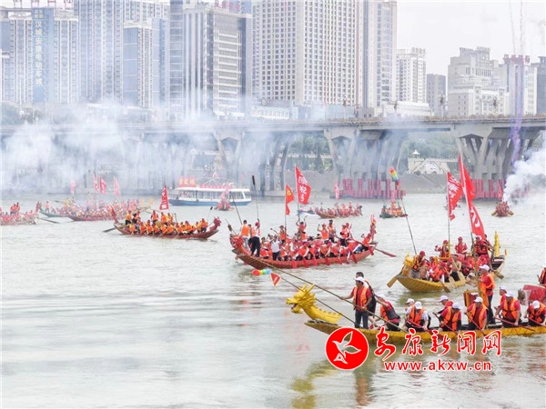 本網(wǎng)訊(記者 艾蓓 吳單 陳楚珺 )漢水起舞,龍騰盛世,平安順利,幸福安康。6月22日上午9時整,一江兩岸鼓角齊鳴,“中國紅 紅西鳳”杯第二十三屆中國·安康漢江龍舟節(jié)主題活動盛大啟幕。