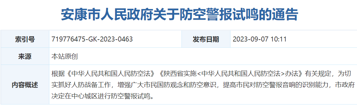 安康市人民政府關(guān)于防空警報試鳴的通告nyp安康新聞網(wǎng)