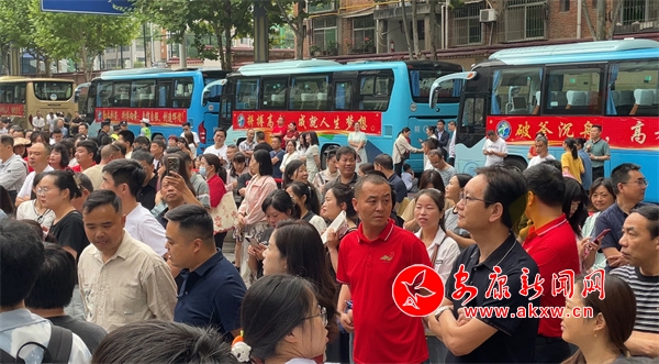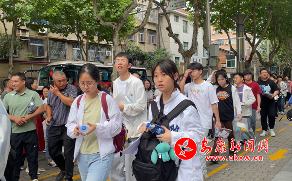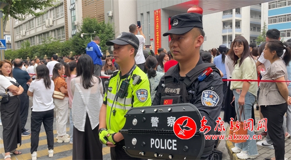 7日上午,考生們排隊(duì)有序進(jìn)入考場。公安干警、消防人員、社區(qū)志愿者等各部門工作人員在城區(qū)各考場為考生保駕護(hù)航。家長、老師們也在考場外為學(xué)子們加油打氣。