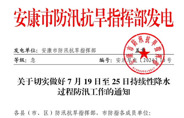 持續(xù)性降水過程防汛工作的通知Yuf安康新聞網(wǎng)