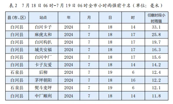 7月18日8時(shí)至20時(shí),我省漢中中南部、安康東部局地降中到大雨。大于30mm雨區(qū)主要分布在嘉陵江支流小通江、徐家河,漢江支流牧馬河、白巖河;暴雨中心位于漢中市城固縣、南鄭區(qū)及安康市白河縣一帶。最大1h、3h、6h降雨分別為洋縣陽平站40.4mm、城固縣東河站48.6mm、南鄭區(qū)紅春林站53.2mm。Yuf安康新聞網(wǎng)
