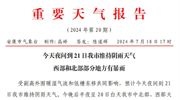 安康市氣象臺繼續(xù)發(fā)布Yuf安康新聞網(wǎng)