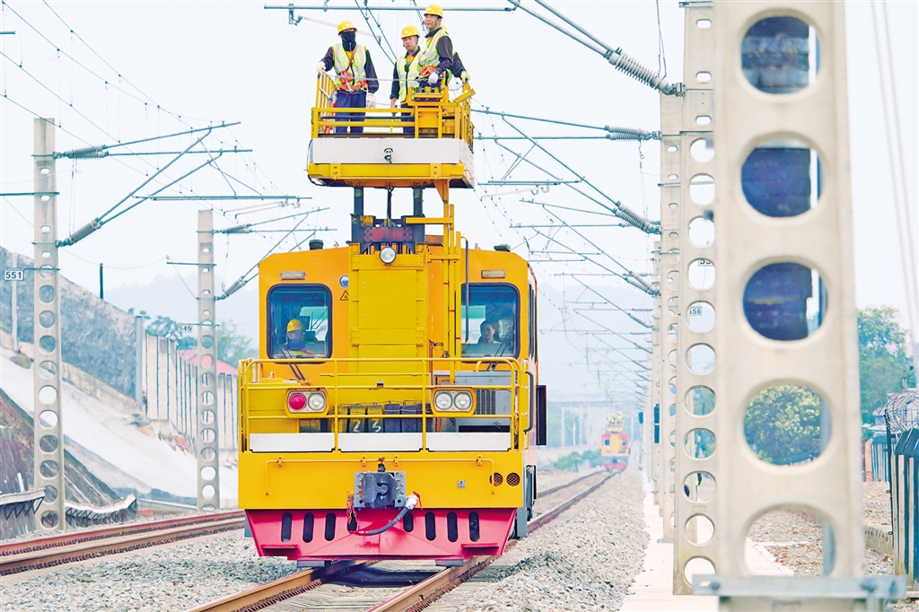 朱瑩駕駛軌道車配合接觸網(wǎng)工進(jìn)行日常檢修FLV安康新聞網(wǎng)