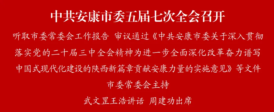 全會由市委常委會主持。市委書記武文罡講話并就《中共安康市委關(guān)于深入貫徹落實黨的二十屆三中全會精神為進一步全面深化改革奮力譜寫中國式現(xiàn)代化建設(shè)的陜西新篇章貢獻安康力量的實施意見》作說明。市委副書記、市長王浩部署經(jīng)濟工作。市政協(xié)主席周建功出席會議。市委常委、統(tǒng)戰(zhàn)部部長、政法委書記寇全安就《中共安康市委關(guān)于在中國式現(xiàn)代化道路上建設(shè)平安祥和幸福安康的實施意見》作說明,市委常委、市紀委書記、市監(jiān)委主任羅曉君就《中共安康市委關(guān)于在中國式現(xiàn)代化道路上建設(shè)風清氣正幸福安康的實施意見》作說明。eTT安康新聞網(wǎng)