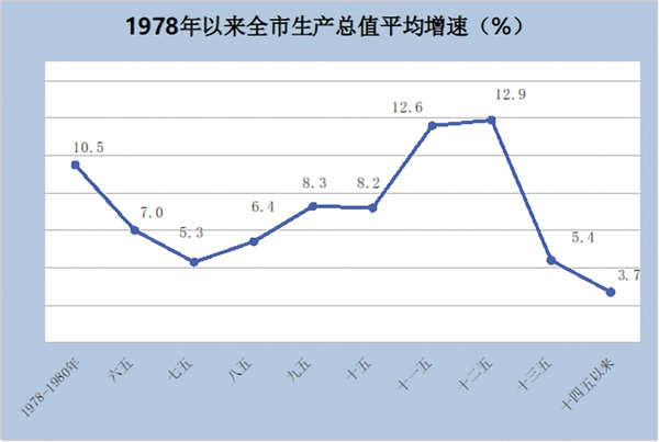 追趕超越步履堅實。從增速看,“六五”到“十五”年均增速為個位數(shù);“十一五”“十二五”時期發(fā)展較快,年均增速兩位數(shù),“十三五”年均增長5.4%,“十四五”前三年平均增長3.7%。從具體年份看,2007—2016年連續(xù)10年保持兩位數(shù)增長,其中2012年增長15.2%。自2009年起,全市GDP增速持續(xù)高于全省平均水平,尤其是2015年躍居全省第一,2015—2019年連續(xù)5年保持全省首位,呈后來居上、追趕超越之勢。2020年受疫情沖擊,增速回落至全省第9位,2023年全市經(jīng)濟平穩(wěn)恢復,增長1.7%,發(fā)展進入新常態(tài)。3Rk安康新聞網(wǎng)