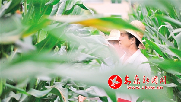 海南玉米基地查看授粉情況