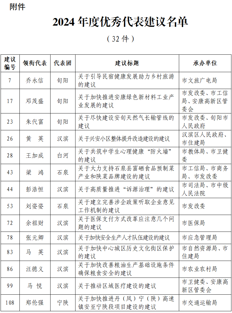市五屆人大五次會議以來,全體市人大代表緊緊圍繞全市中心工作和人民群眾普遍關(guān)心關(guān)注的熱點(diǎn)難點(diǎn)問題,依法履行職責(zé),積極建言獻(xiàn)策,共提出了256件代表建議,這些建議主題明確具體、建議切實(shí)可行、行文簡潔規(guī)范、效果可期可見,為推進(jìn)我市經(jīng)濟(jì)社會發(fā)展和民主法治建設(shè)凝聚了智慧、增進(jìn)了共識、貢獻(xiàn)了力量。為樹立典型、推進(jìn)工作,市人大常委會決定,對喬永信等代表提出的32件優(yōu)秀代表建議予以通報表揚(yáng)。