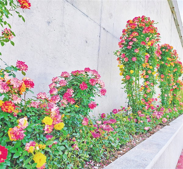 西壩防洪堤下月季長廊 實習(xí)記者 張晶晶 攝ndu安康新聞網(wǎng)