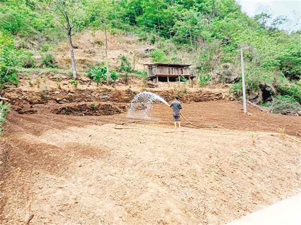 4月25日,平利縣長安鎮(zhèn)金沙河村安排運輸投送農(nóng)業(yè)生產(chǎn)用水,對500畝烤煙幼苗進(jìn)行灌溉。胡鈴鈴 攝