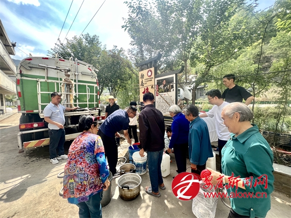 受高溫干旱天氣影響,漢陰縣城關(guān)鎮(zhèn)部分群眾生產(chǎn)生活用水受到影響。5月22日,該鎮(zhèn)協(xié)調(diào)灑水車、消防車,組織黨員干部為群眾送水。張輝 攝