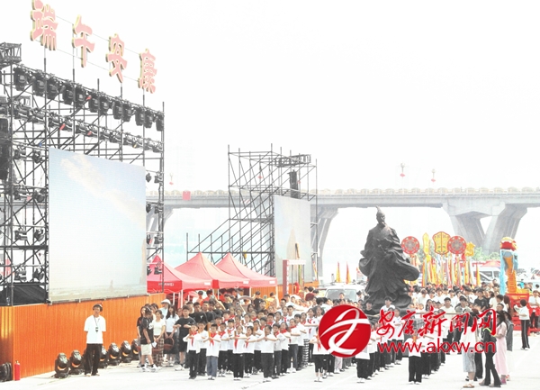 江面上,一艘艘龍舟如離弦之箭飛馳而過(guò),選手們整齊劃一地?fù)]動(dòng)船槳,濺起層層水花,展示出強(qiáng)大的團(tuán)隊(duì)協(xié)作精神和競(jìng)技實(shí)力。舞臺(tái)上,文藝表演精彩紛呈。緬懷先賢節(jié)目莊嚴(yán)肅穆,百名童子手持竹簡(jiǎn),齊聲詠?lái)灱牢,將人們帶回到那個(gè)古老的時(shí)代,追思愛(ài)國(guó)詩(shī)人屈原。龍頭祭祀環(huán)節(jié)莊重而神圣,“請(qǐng)龍、祭龍、合龍、送龍、龍頭點(diǎn)睛”等流程依次上演,傳承地域民俗風(fēng)情。情景歌舞、漢調(diào)二黃、民俗舞蹈等具有濃郁地方特色的節(jié)目輪番登場(chǎng),演員們?nèi)橥度,用精湛的表演展現(xiàn)了安康獨(dú)特的文化魅力,為觀眾帶來(lái)了一場(chǎng)視聽(tīng)盛宴。teT安康新聞網(wǎng)