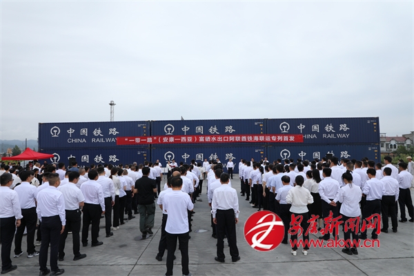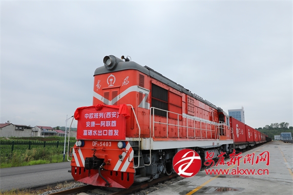 安康富硒水出口阿聯酋鐵海聯運專列首發(fā)