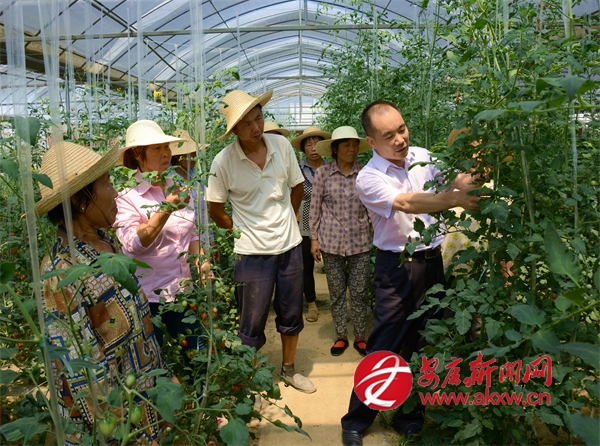 忠誠村黨支部書記劉瑞紅現(xiàn)場給村民講解如何修剪圣女果dfQ安康新聞網(wǎng)