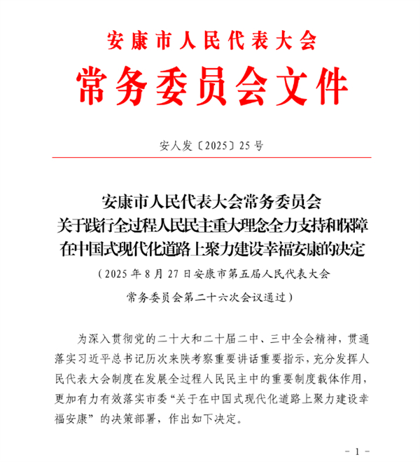 本網(wǎng)訊(通訊員 周清華 張凡)8月27日,安康市五屆人大常委會第二十六次會議作出《安康市人民代表大會常務(wù)委員會關(guān)于踐行全過程人民民主重大理念全力支持和保障在中國式現(xiàn)代化道路上聚力建設(shè)幸福安康的決定》(以下簡稱《決定》),并自印發(fā)之日起實(shí)施。以地方人大常委會作出重大事項(xiàng)決定的形式,將黨的主張通過法定程序轉(zhuǎn)化為全體人民的共同意愿,是安康市人大常委會強(qiáng)化擔(dān)當(dāng)、依法履職的創(chuàng)新實(shí)踐,是圍繞中心、服務(wù)大局的務(wù)實(shí)舉措,必將為在中國式現(xiàn)代化道路上聚力建設(shè)幸福安康注入堅(jiān)實(shí)的人大力量。