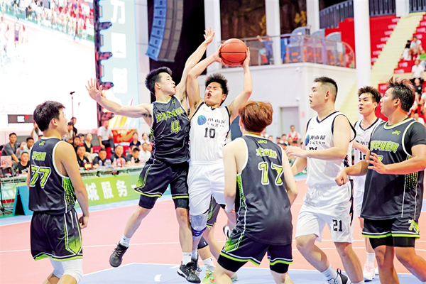 安康企協(xié)桃花源代表隊在外籍球員CJ·特羅特和賈森·漢尼拔的帶領(lǐng)下一度領(lǐng)先12分,南宮山代表隊球員在主力隊員梁歡、朱思禹先后受傷的不利局面下,由彭博帶領(lǐng)球隊艱難咬住比分。距離全場比賽結(jié)束9.8秒,南宮山代表隊3號隊員李子豪外線一記精準的3分把比分追至78平,這是兩隊比分首次打平。CJ·特羅特后場接球,直插籃下,轉(zhuǎn)身后仰,將比分反超2分,留給南宮山隊3.2秒。南宮山代表隊4號球員彭博一記長傳跨過半場,精準找到了6號球員韓邦,上籃,80分平,加時賽,球場響起山呼海嘯的歡呼。加時賽中,南宮山代表隊用一次次精準的投籃、拼盡全力的防守,最終以93:88的比分奪得冠軍。