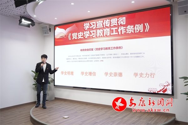 活動(dòng)中,市委黨校青年教師分享《中國共產(chǎn)黨陜西安康歷史》第一卷(1921-1950),講述新民主主義革命時(shí)期的安康黨史,通過情景演繹再現(xiàn)安康紅色革命歷史中的英雄人物,從紅色文化遺存、革命先輩感人事跡中闡釋中國共產(chǎn)黨初心使命,引人深思、催人奮進(jìn)。etp安康新聞網(wǎng)