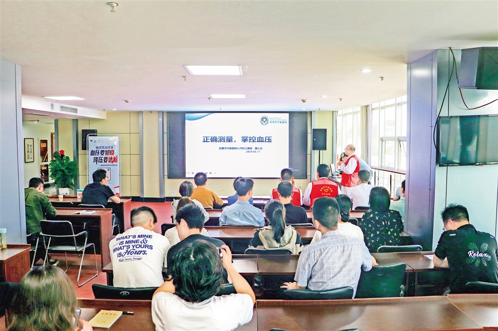 本網(wǎng)訊(記者 翟本榮/文 吳單/圖)5月17日是第20個(gè)世界高血壓日,當(dāng)天上午,安康日?qǐng)?bào)社邀請(qǐng)市中醫(yī)醫(yī)院高新分院相關(guān)專家,來(lái)單位開展“有效控制 健康長(zhǎng)壽”高血壓及康復(fù)醫(yī)療健康科普知識(shí)專題講座。報(bào)網(wǎng)全體干部職工70余人參加。