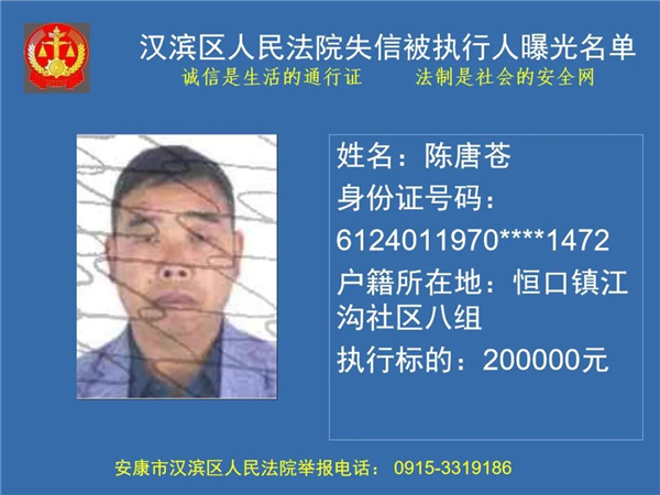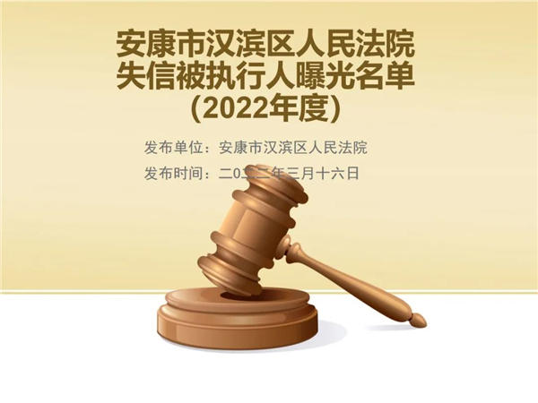 曝光失信 | 安康市漢濱區(qū)人民法院失信被執(zhí)行人曝光名單(2022年第1期)