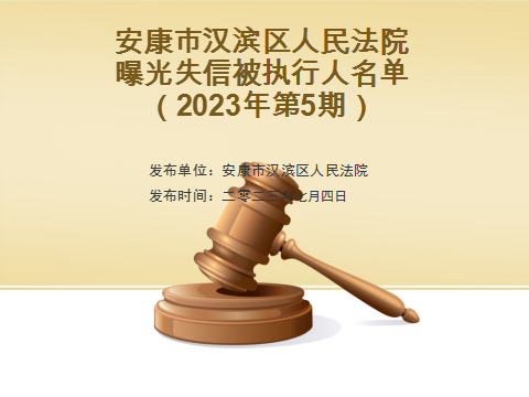 曝光失信 | 安康市漢濱區(qū)人民法院失信被執(zhí)行人曝光名單(2023年第5期)