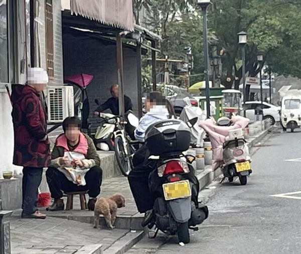 11月9日,在城區(qū)東內環(huán)路住戶門前,有市民帶著狗未系繩和鄰居聊天,狗在門前隨意跑動。(圖文/馬婷)CSu安康新聞網(wǎng)