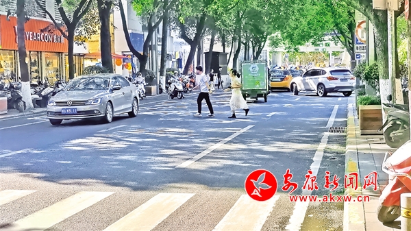 6月22日,安康中心城區(qū)金州南路,行人橫穿馬路,不走斑馬線。(記者 吳單 攝)……