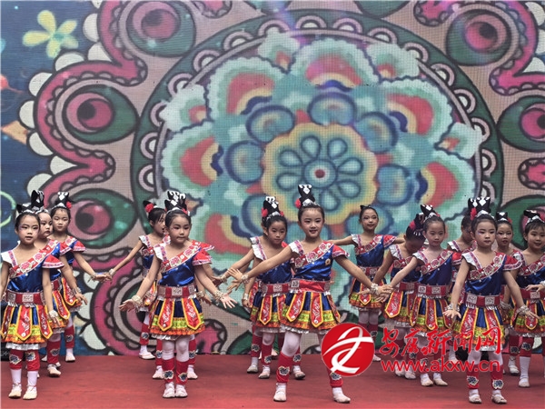 鼓樓小學(xué)的學(xué)生們表演的舞蹈《苗娃踏歌迎國慶》,以朝氣蓬勃的舞姿和天真爛漫的笑臉,踩著歡快的節(jié)拍,表達了少年兒童對祖國生日最可愛的祝福,展現(xiàn)了新時代安康少年積極向上的精神風(fēng)貌。