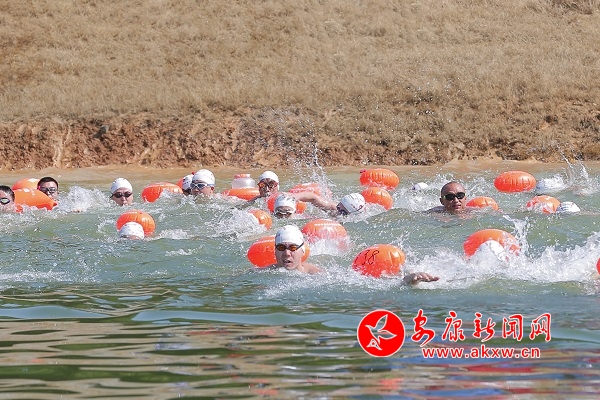 比賽現(xiàn)場,選手們你追我趕,在寬廣的湖中盡情體驗湖泊暢游的快感,享受著健身運動帶來的快樂。本次比賽場地選在瀛湖風(fēng)景區(qū)翠屏島湖面,相較于傳統(tǒng)賽道比賽模式,天然水域上的比賽不但是游泳技巧的較量,更是勇氣、毅力、耐力的比拼。