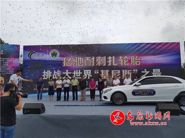 本網(wǎng)訊(記者 張世虎)單胎扎釘7700次后,且安全行駛202公里。8月28日,猛馳耐刺扎輪胎挑戰(zhàn)“大世界基尼斯之最”活動(dòng)在安康高新區(qū)舉行。在公證人員的公證下,猛馳耐刺扎輪胎現(xiàn)場(chǎng)成功完成挑戰(zhàn)。據(jù)了解,9月10日,大世界基尼斯工作人員將來(lái)安康為其頒發(fā)挑戰(zhàn)證書(shū)。E5M安康新聞網(wǎng)