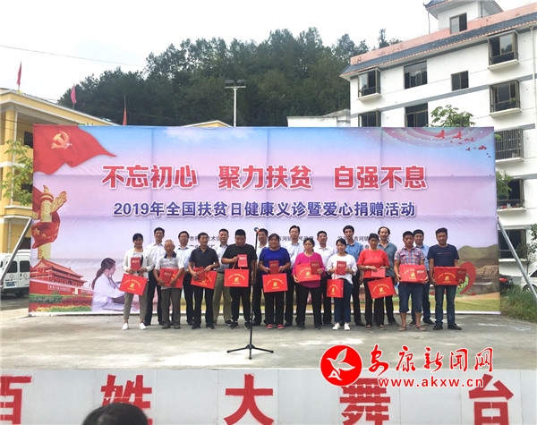 本次活動以“不忘初心、聚力扶貧、自強不息”為主題,以“健康義診、愛心捐贈、表彰先進”為重點,旨在為貧困群眾送溫暖、獻愛心,向社區(qū)村民普及宣傳健康科普知識,倡導健康、文明、進步的生活方式,增加老百姓對疾病知識的了解和認識,為困難患者解決實際問題。