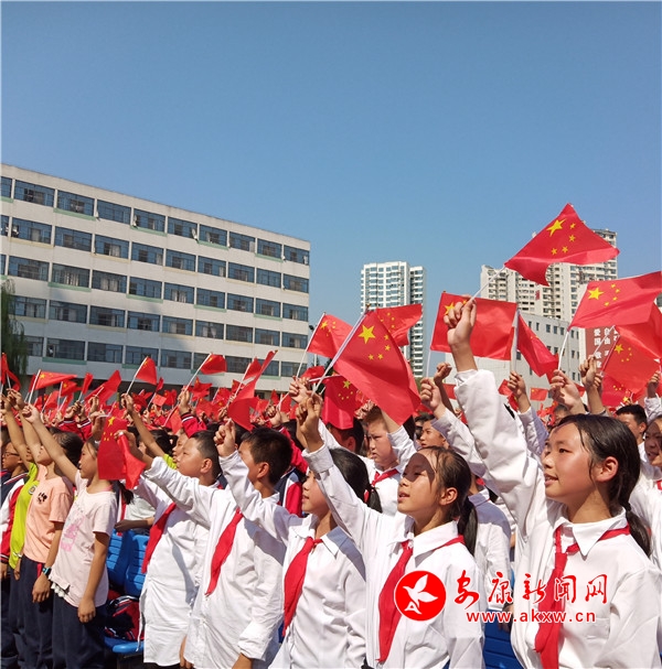 初二九班的王運(yùn)城作為此次活動中的旗手,他說:“今天,能站在這里我感到很自豪,明天就是祖國母親的生日,我們在此獻(xiàn)歌,祝愿祖國母親永遠(yuǎn)繁榮昌盛。”