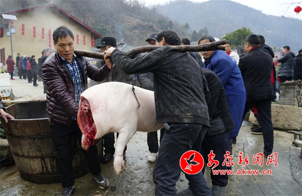 時至臘八,一大早,馬河社區(qū)的工作人員就開始熬煮臘八節(jié)的傳統(tǒng)美食——臘八粥,邀請游客們在溫暖香甜的粥香中,共度臘八節(jié),迎接新年的到來;顒蝇F(xiàn)場,殺年豬、吃庖湯、寫春聯(lián)、趕集市、辦年貨,濃濃的年味彌漫在整個鄉(xiāng)村。采蓮船、秧歌隊翩翩起舞,嗩吶聲、鑼鼓聲、聲聲入耳;魔芋豆腐、豆腐干、紅薯粉條、蜂蜜、臘腸……不少來自田間地頭的農(nóng)特產(chǎn)品紛紛亮相,受到游客們的追捧,大家爭相購買。AAg安康新聞網(wǎng)