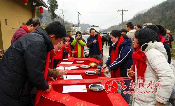 在古色古香的四合院內(nèi),小方桌依次排開,皮影戲精彩亮相。皰湯宴上,各種美食輪流上桌,讓現(xiàn)場游客大飽口福;顒舆邀請了書法愛好者揮毫潑墨,免費書寫春聯(lián),吸引了不少村民前來領(lǐng)取。AAg安康新聞網(wǎng)