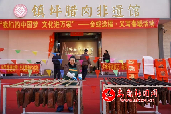 “喝口臘肉湯,給個(gè)皇帝都不當(dāng)!”臘肉節(jié)準(zhǔn)備了20個(gè)大吊鍋,把大鐵鍋燉的各種臘肉和各種炒菜美食擺成長桌宴,讓到場的嘉賓和群眾共同品嘗。鎮(zhèn)坪臘肉節(jié)不僅僅是一場臘肉美食的集會(huì),更是一種非遺技藝的傳承;顒(dòng)現(xiàn)場還邀請了陜南民歌傳唱人夏梅子為大家獻(xiàn)唱民歌,并舉辦了“追尋非遺味道”米花糖制作體驗(yàn)活動(dòng)和“傳承非遺技藝”拓印美好祝;顒(dòng),以及“金蛇送福 文化進(jìn)萬家”義寫春聯(lián)等活動(dòng)。