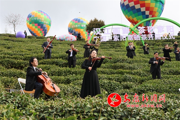 開園儀式有茶山實景演藝、紫陽民歌聯(lián)唱、祭茶神儀式、華服秀等。上午10時,開園儀式在沉浸式交響樂《春之聲》中浪漫開場,樂團成員分布在茶園間,音符隨山風流淌,樂聲與茶山風光交相輝映,觀眾置身茶園,仿若與自然共譜春之樂章。茶山大秀《生生不息》以天地為幕、茶園為臺,采茶號子響徹山谷,7位紫陽民歌手帶來的聯(lián)唱《山河共鳴》,以原生態(tài)唱腔配以舞蹈演員的靈動演繹,唱響茶鄉(xiāng)人民對自然的敬畏與生活的熱愛。整場演出高潮迭起、亮點紛呈,令嘉賓和游客們流連忘返。8xz安康新聞網