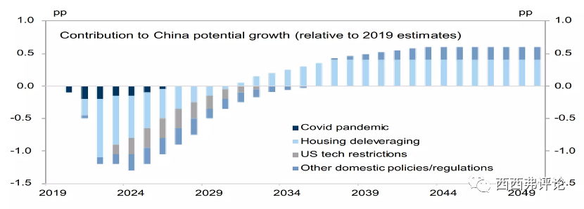 根據(jù)高盛的分析,在2022年,房地產(chǎn)業(yè)去杠桿對(duì)中國(guó)增長(zhǎng)的負(fù)面影響,是疫情因素的數(shù)倍。