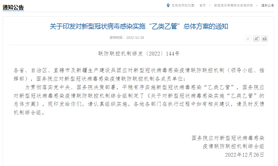 關(guān)于印發(fā)對(duì)新型冠狀病毒感染實(shí)施“乙類乙管”總體方案的通知MAR安康新聞網(wǎng)