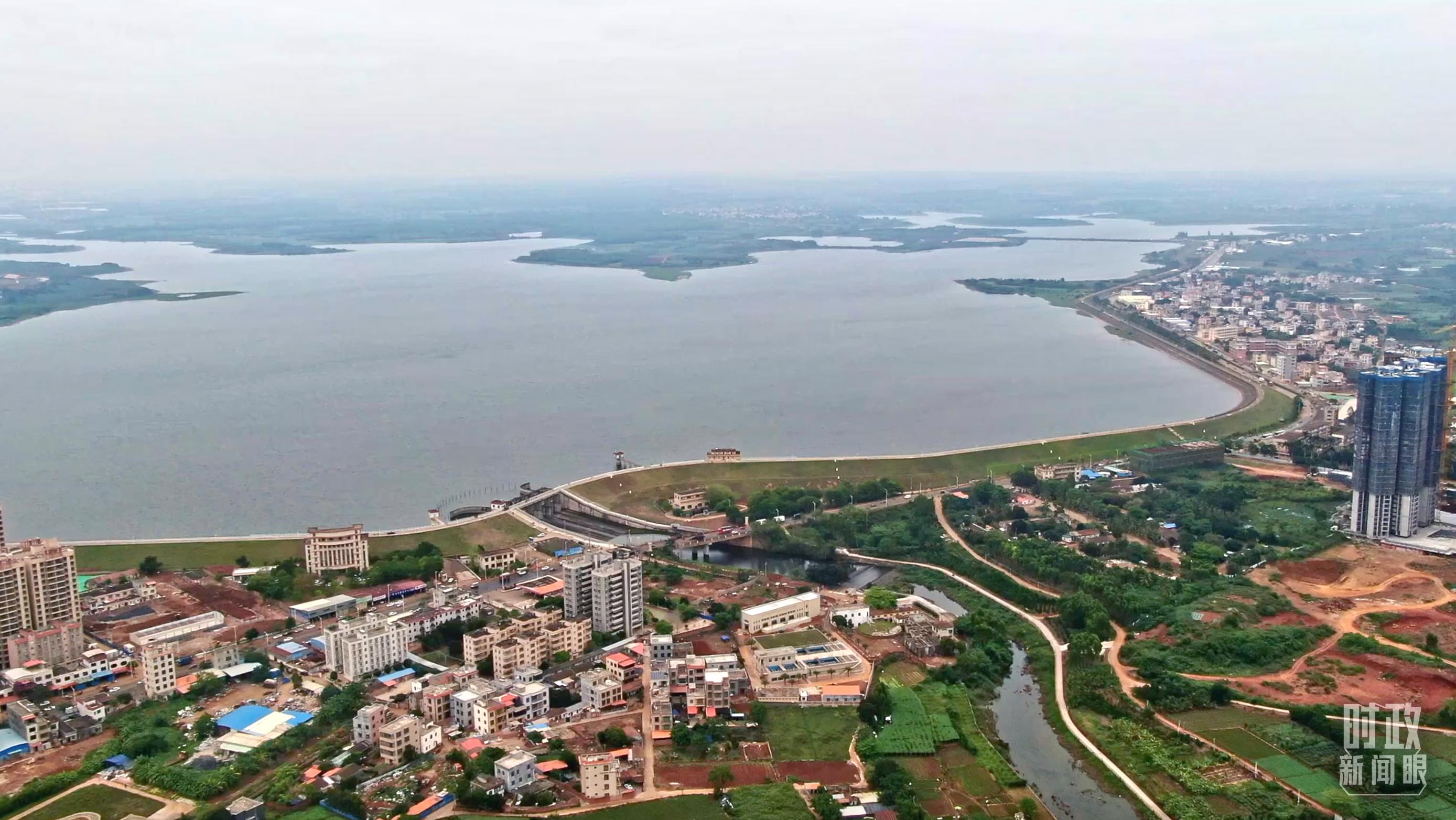 △水庫(kù)與沿岸城市航拍。(總臺(tái)央視記者鄧裕達(dá)拍攝)
