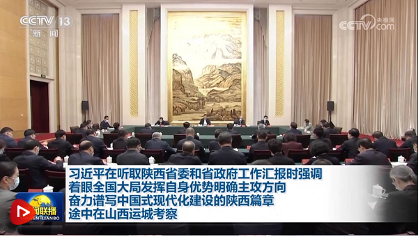 5月17日,習(xí)近平在西安主持中國(guó)-中亞峰會(huì)前夕,專門聽取陜西省委和省政府工作匯報(bào),省委書記趙一德匯報(bào),省長(zhǎng)趙剛等參加匯報(bào)會(huì)。習(xí)近平發(fā)表了重要講話,對(duì)陜西各項(xiàng)工作取得的成績(jī)給予肯定。