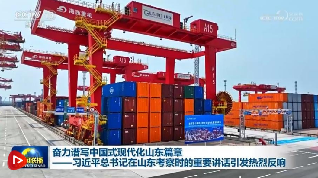黃海之濱,山東日照港全自動(dòng)化集裝箱碼頭上無(wú)人駕駛集裝箱卡車往來(lái)穿梭。習(xí)近平總書記首先來(lái)到這里考察,他指出,日照港近年來(lái)推進(jìn)科技創(chuàng)新,將傳統(tǒng)港口改造升級(jí)為現(xiàn)代化港口,不僅貨物吞吐量躋身全國(guó)前列,還積累了通過(guò)傳統(tǒng)產(chǎn)業(yè)改造升級(jí)發(fā)展新質(zhì)生產(chǎn)力的經(jīng)驗(yàn),值得肯定。