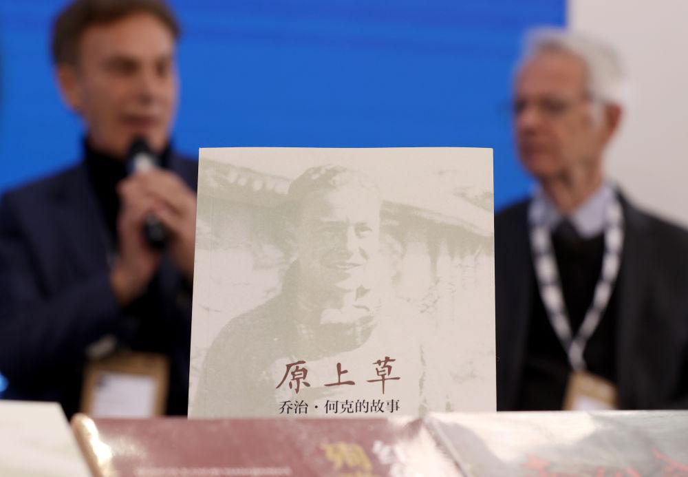 這是3月12日在英國(guó)倫敦書展上展示的《原上草:?jiǎn)讨?middot;何克的故事》中文版新書。新華社記者 李穎 攝