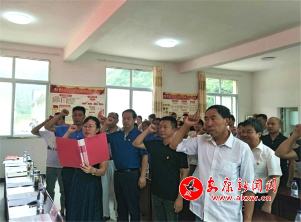 “我志愿加入中國共產(chǎn)黨,擁護(hù)黨的綱領(lǐng),遵守黨的章程……”7月17日,在老莊溝村二樓會議室里,來自市中心血站的20多名黨員干部與老莊溝村全體黨員統(tǒng)一佩戴黨徽,整齊列隊,舉起右手,在黨旗下莊嚴(yán)宣誓,重溫入黨誓詞。hiA安康新聞網(wǎng)