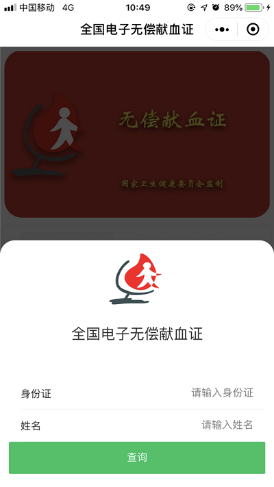 在微信小程序中搜索“全國(guó)電子獻(xiàn)血證”,進(jìn)入程序后,點(diǎn)擊下圖,在我的證件中選擇電子無(wú)償獻(xiàn)血證。