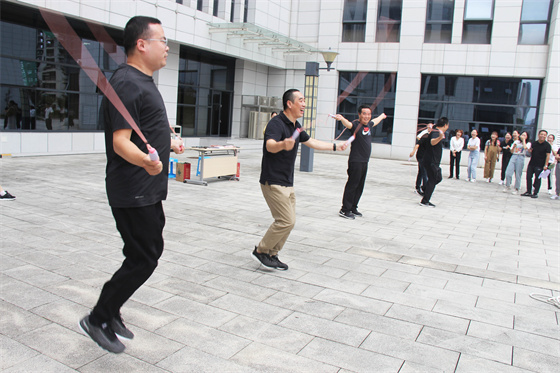 當(dāng)然比賽中還有許多“小插曲”,有的選手鞋帶松了,有的選手繩子扭了,有的選手眼鏡掉了,有的選手被大繩打到疼得哇哇叫,但正是因?yàn)橛辛诉@些小插曲,才讓參與者的笑聲更響,讓這場比賽變得更生動(dòng)有趣,也讓“快樂工作、幸福生活”這句話有了最真實(shí)的體現(xiàn)。