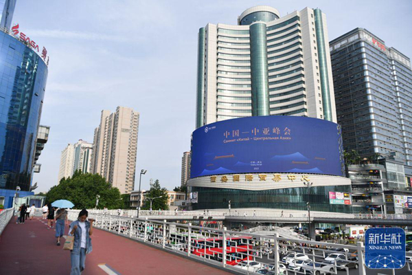 ↑這是5月15日拍攝的西安市雁塔區(qū)一處商場外的中國-中亞峰會宣傳海報。新華社記者 張博文 攝